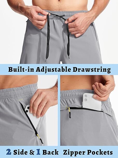 3 Zipper Pockets: Store all your essentials with ease in our gym shorts for men. Including 2 side zipper pockets, and 1 back zipper pocket, secure storage of valuables like wallets cell phone